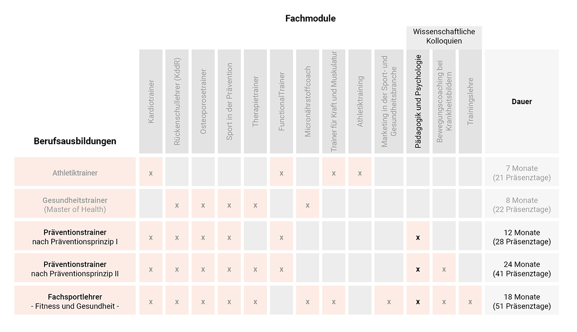 Hier referieren Professoren, Doktoren und Sportwissenschaftler, die im Vorlesungsbetrieb der Deutschen Berufsakademie Studenten unterrichten. Eine sehr intensive Schulung, die Sie auf den neusten Stand der Wissenschaft bringt. Durch die Integration von praktischen Übungsstunden geht der Praxisbezug nie verloren!