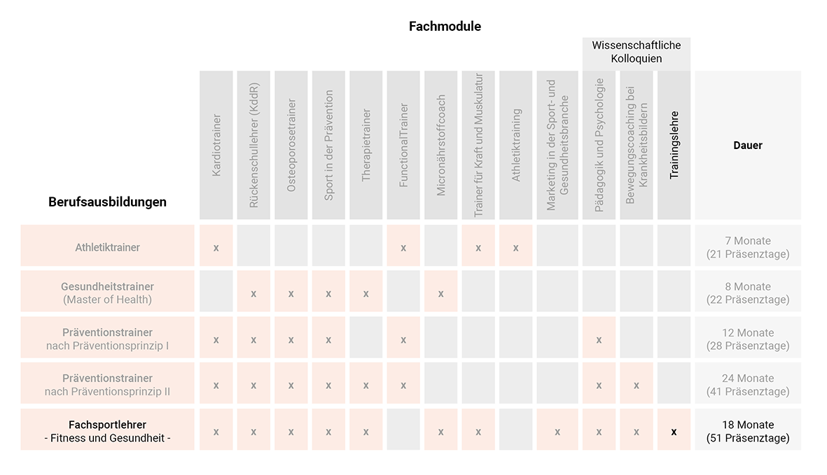 Hier referieren Professoren, Doktoren und Sportwissenschaftler, die im Vorlesungsbetrieb der Deutschen Berufsakademie Studenten unterrichten. Eine sehr intensive Schulung, die Sie auf den neusten Stand der Wissenschaft bringt. Durch die Integration von praktischen Übungsstunden geht der Praxisbezug nie verloren!